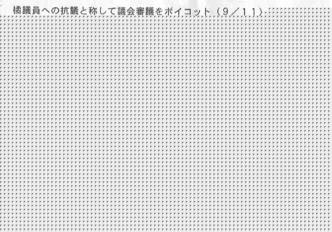 市議会議長 中川 進 様 申入書 職員への暴行を働き、全会一致で辞職勧告決議を受けながら決議自体が無効であるかのような橘雄介氏の言動に強く抗議します。 民主主義のもとでは、相手の尊厳を踏みにじり、言論を風圧する暴力そのものが認められないことは今さら論ずるまでもありません。 また売買春の是非を論ずるまでもなく、司法によって裁かれ、有罪判決を受けながら、平然と議席に居座り続ける南和男氏も決して許されるべきではありません。 辞職勧告決議の重みや、それに負託された市民の信頼は両名の言動によって今や地に墜ちたと言うべきです。議長として取りうるあらゆる手段を講じてでも、辞職勧告決議を実行あるものとし、京田辺市議会の権威と信頼を回復されるよう、強く申し入れます。 2000年9月12日 京田辺市議会議員 次田典子