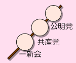 ![]() ![]() 選挙の時は対立・タイリツ 選挙が終われば仲良し・ナカヨシ 市民が知らなきゃ何でも出来るよ 談合(ダンゴー)3会派 −ダンゴ3兄弟のメロディーで歌うと楽しく歌えるヨ!?−