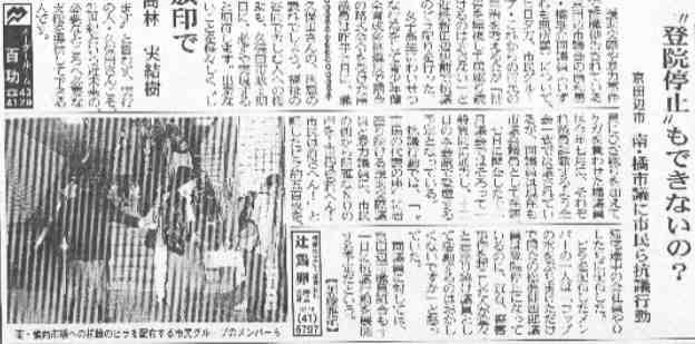 “登院停止”もできないの? 京田辺市 南・橘市議に市民ら抗議行動 洛南タイムス 2000年12月8日 |