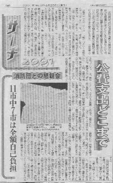公費支出どこまで 消防団との懇親会 11市中7市は全額自己負担 讀賣新聞サーチ2001 2001年6月25日 |