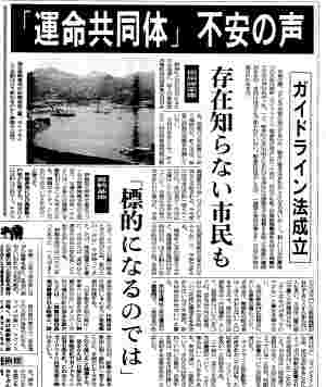 次田市議は3月市議会の一般質問で、「助成金の性質は何か」「ガイドライン法後、助成金があることによって市の判断が影響される可能性はないか」と、ただし市当局は、助成金で道路が出来て、市民の役に立っている」と答弁。 判断への影響については明言を避けた」 ガイドライン法が参院で可決された二十四日も、 久村哲市長は、「コメントできない」と沈黙を守る。 二十四日、道行く市民たちは施設について、「よく知らない」と口をそろえた。 次田市議は、「施設について、市民たちは知らされていない状態だ。 市長や町長は、現状を市民に詳しく説明する必要がある」と話した。 |