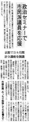 市民派議員の活動をバックアッブしようと、地方自治や財政の専門家らを講 師に迎えた「男女共同政治参画セミナー」が今夏、京都で開かれる。主催者
